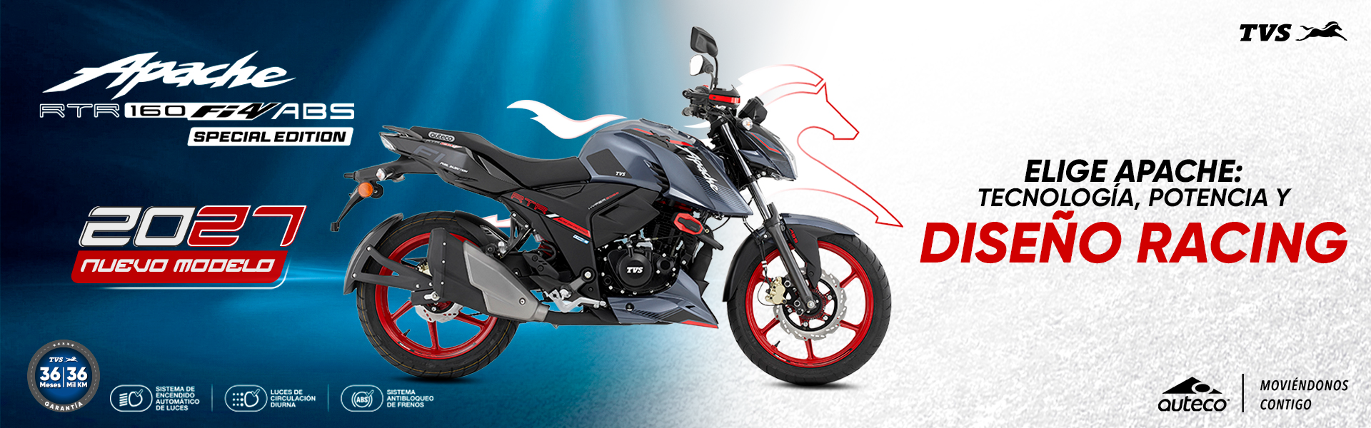 La Nueva Apache RTR 160 4V FI ABS 2024 llega para subir la vara en el segmento medio de deportivas. Su cilindrada es la más potente frente a todas sus competidoras con unos impresionantes 17.3HP que la ponen por encima de cualquier rival de su categoría.