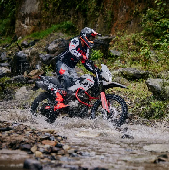La MRX 125 S Edición Especial FOX es la motocicleta ideal para quienes buscan aventura sin importar su estatura.Eesta moto te brinda confianza y control absoluto. Su alianza con FOX asegura un rendimiento excepcional, permitiéndote explorar caminos y terrenos difíciles con la seguridad de que cada cruce salvaje es una nueva oportunidad para desafiar tus límites.
