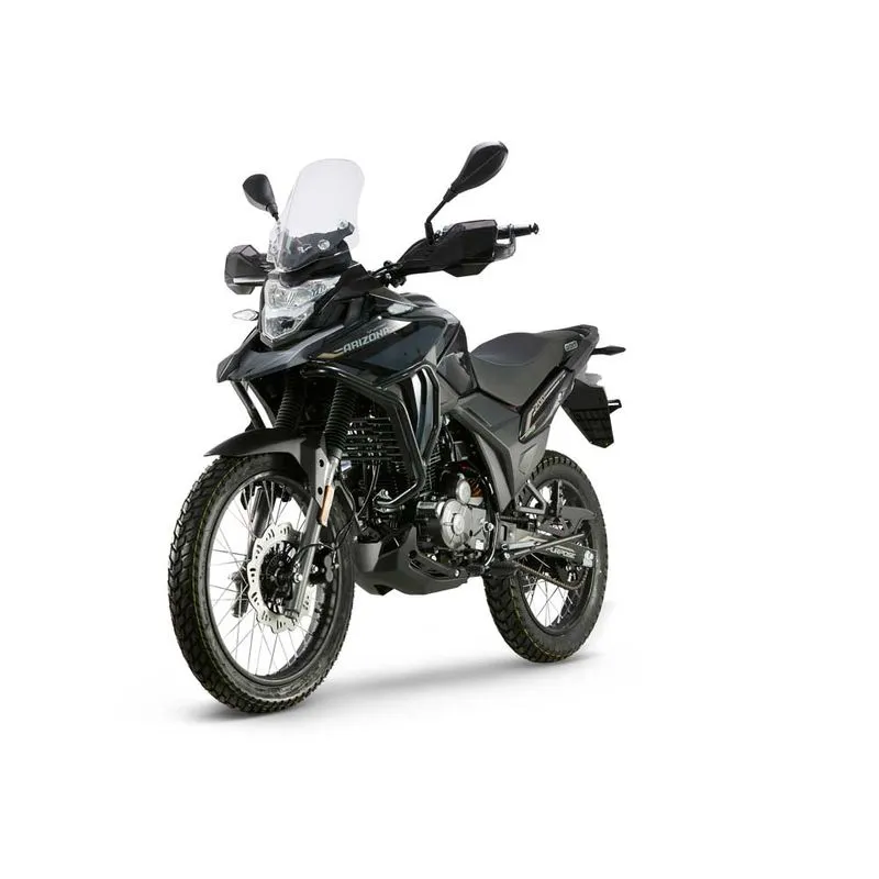 La moto MRX 200 Arizona está diseñada para personas apasionadas por la aventura, que quieran sobrepasar los límites de lo común desbloqueando nuevos horizontes en una motocicleta en la que tenga la ventaja en cualquier terreno y recorrido que desee realizar. Le estamos hablando a moteros que quieren desbloquear el siguiente nivel, siendo conscientes que van a resaltar en cualquier lugar con una máquina que expresa lo mejor del significado TODO TERRENO en un vehículo. Con su potente motor de 199,5 CC, su potencia de 17,4 HP @ 8000 rpm y su torque de 17 Nm @ 6000 rpm, será tu compañera ideal para desafiar cualquier terreno.